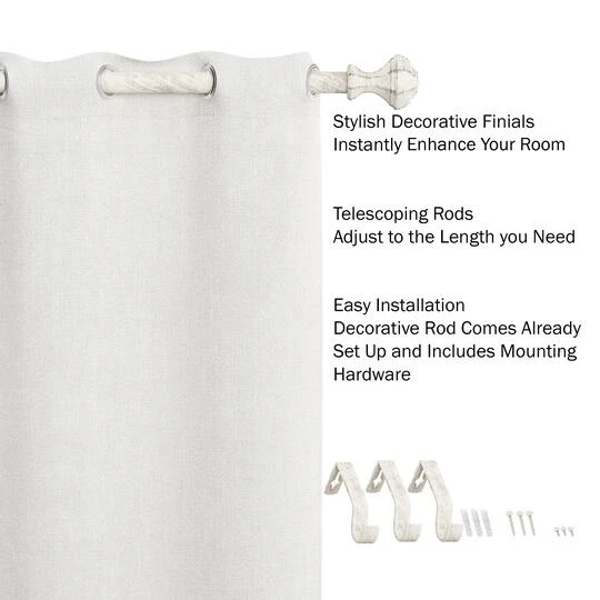 The Hastings Home 1″ Curtain Rod is an excellent option for hanging curtains, wall art, or tapestries. The rod conveniently extends from 48″ to 84″ for maximum versatility, while the chic distressed white finish and vintage knob style finials are sure to look great with any décor. For easy installation, wall brackets and hardware are included.