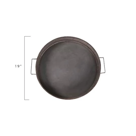 This is a great tray with a variety of uses! It is 19” in diameter long and would look great on your coffee table, extra-large ottoman or centered on your bed at a slight angle with a book small flower vase and special coffee cup.