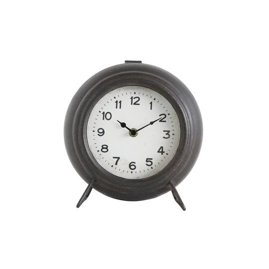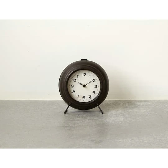 This bronze clock is just what you need to add that finishing touch to your home décor. It is 9” tall with a round frame and triangle feet. The white face contrasts the black numbers which make it easy to see. You will love your new clock.