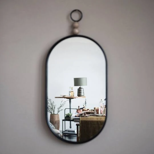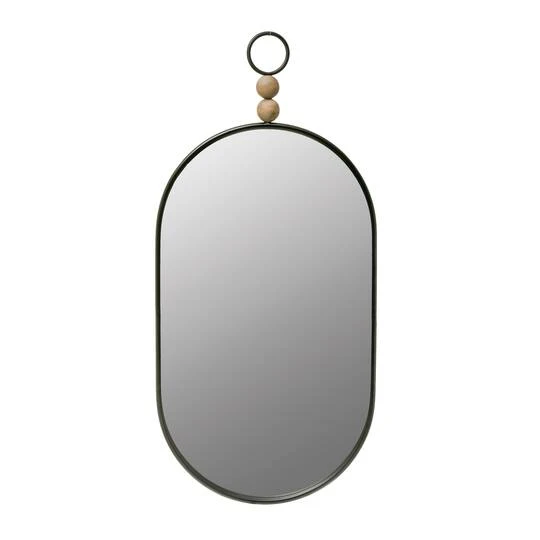 This handsome oval black metal framed wall mirror with wood beads detail is a charming accent for any living room, den, office, or bedroom. And it incorporates a wide range of styles, making it easy to work with a range of design themes.