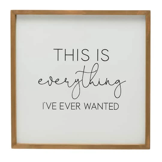 This engaging and uplifting framed wall décor with a saying that reads, “This is Everything I’ve Ever Wanted.” It is a thought-provoking and simple accent piece that will look great in any room in your home or office. And it easily incorporates into a wide range of styles.