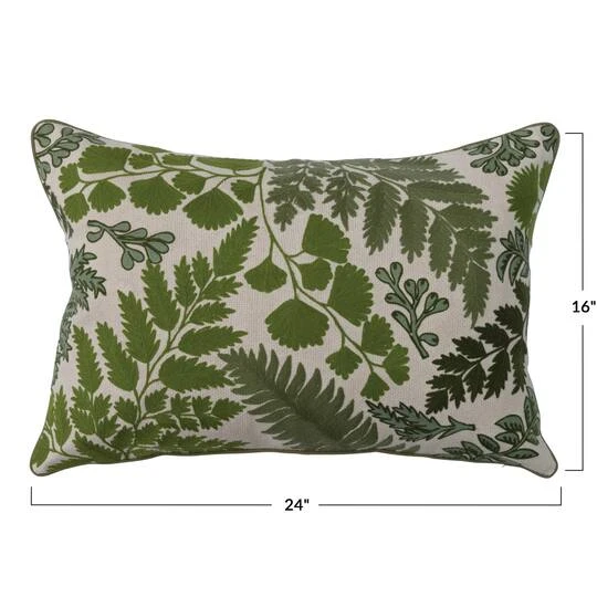 This green and white cotton lumbar pillow cover features botanical embroidery. It is perfect for adding depth and personal style to any bed, chaise, or loveseat!
