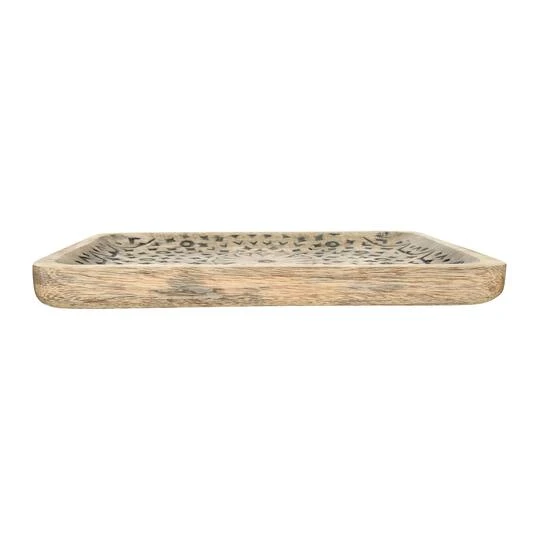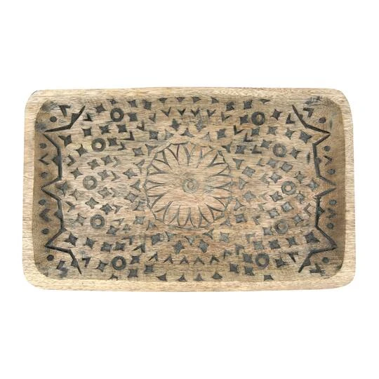 With special carved designs, this mango wood tray will make an amazing addition to the room décor. Place it on a table to display figurines, decorative objects or glass encased candles. Also ideal for the kitchen table, place in the center and make it a home for the salt, pepper and napkin holder.