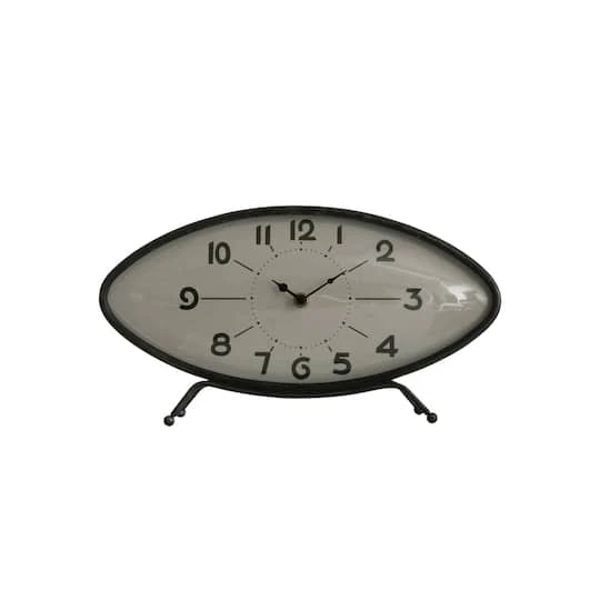 Take time to spruce up the mantel or a decorative shelf with this oval mantel clock featuring a retro design. The center circle with lines reaching to each number combined with an elongated oval shape gives the illusion that the clock is in the shape of an eye. Have fun displaying it on a mantel, shelf or tabletop and asking individuals if they can pick out the hidden design within the clock.