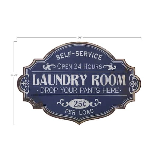 This distressed blue sign provides a vintage feel to your laundry room. The worn metal finish is reminiscent of an old world antique. The “Laundry Room. Drop Your Pants Here” phrase is subtle, yet sarcastic.