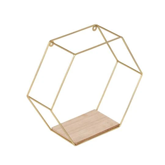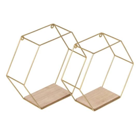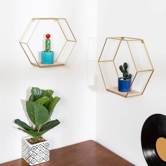 Sometimes designers prefer a shelf to recede into a wall, leaving the focus on its contents. At other times, it’s a bold move to make the frame a key part of the design. In the case of this set of decorative wall shelves, the design strategy sits firmly in the latter camp. This pair of hexagonal shelves command attention, both for their golden luster and for the way the two tracks of delicate steel framing create a striking 3D display box for whatever sits on the shelf. We love to hang these near an entryway or up a staircase, giving guests and housemates both a chance to consider and recollect the picture frame, tropical plant, or other cherished item.