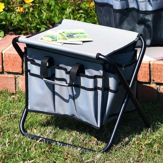 Make use of this utility stool during your next DIY endeavor by storing tools and supplies in the 20 integrated pockets, transporting from location to location with two attached handles, and easily collapse the durable frame to save space when not in use.