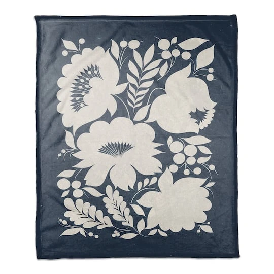Indigo Flower Print 50″ X 60″ Coral Fleece Blanket