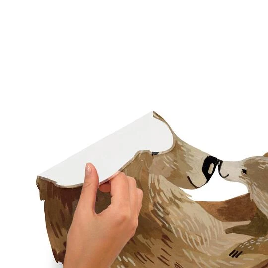 Tuck your little adventurer in at night with this Bear Hug peel and stick giant wall decal from RoomMates and Little Pine Artistry. Create a nature-inspired room or nursery for your little one that inspires sweet, peaceful dreams. These adorable woodland bears serve as a reminder of just how special a parent’s love really is. Assemble in minutes to create a soft, nurturing environment. RoomMates wall decals are an easy and affordable way to decorate in minutes. Reposition or remove them effortlessly with no remaining sticky residue or damage to walls.