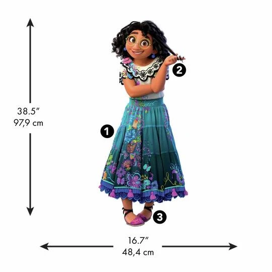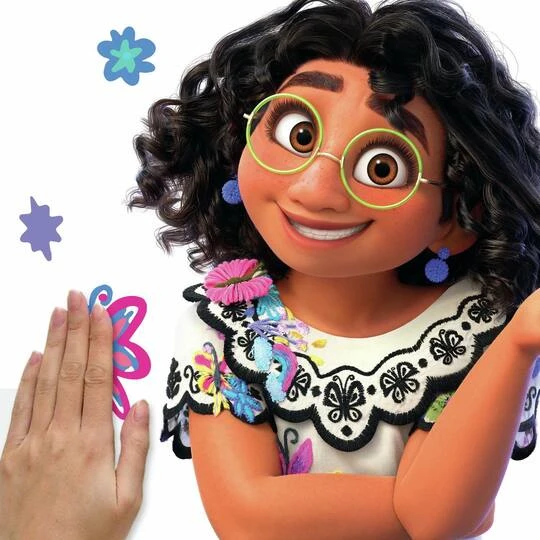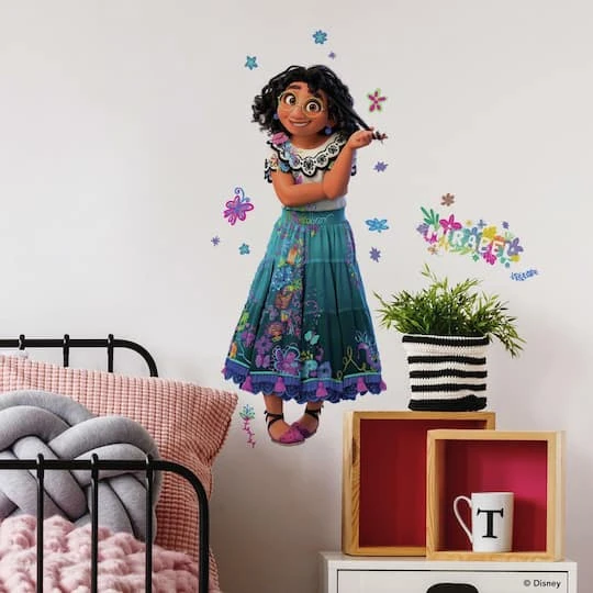 A world of wonder and discovery awaits with this officially licensed Mirabel peel and stick giant wall decal from RoomMates. Relive the magic of Disney’s animated blockbuster, Encanto and liven up any space with this oversized design of Mirabel bursting with colorful floral accents and fun tropical-style vibes.