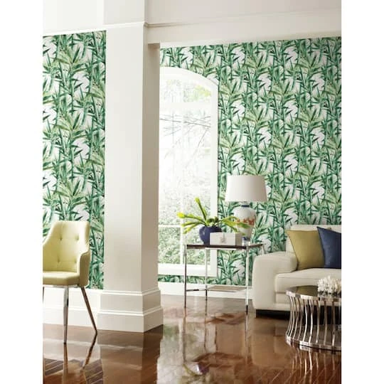 Walls become a backyard garden with Lucky Bamboo Peel and Stick Wallpaper by RoomMates. This pattern, inspired by the natural world, gives any surface a dimensional look with little effort. Add organic details to any space for an accent wall, full room makeover, furniture DIY, and more. Simply cut the peel and stick wallpaper to size, remove the backing, and stick to any smooth, clean surface. Pull off the wall in full sheets when it’s time to redecorate: no sticky residue or damage left behind. Bring the natural world into your home with peel and stick wallpaper from RoomMates.