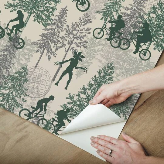Stranger Things fan, have you ever wished you could add your favorite show to your walls? Follow the trail of subtle detail and dark clues to the unknown of the Upside Down with our Hawkins Woods Peel and Stick Wallpaper. Offered in two colorways, this wallpaper will easily match your home or room’s décor. Exclusively licensed from Netflix, this Hawkins Woods Peel and Stick Wallpaper is easy to install and remove! With high-quality vinyl and adhesive, RoomMates Décor peel and stick wallpaper removes in full panels and leaves no residue behind.