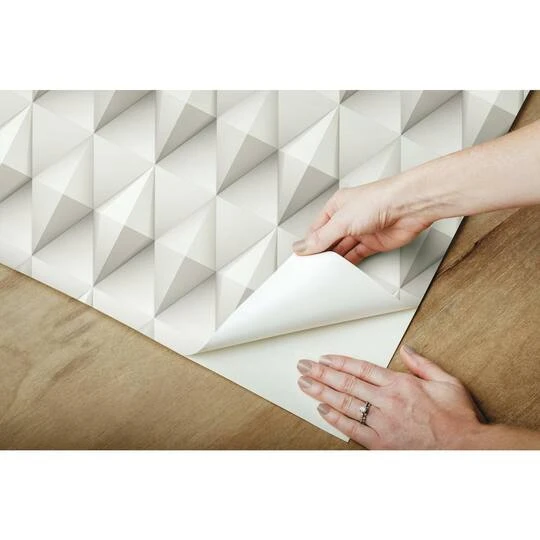 Simple yet statement making, Paragon Geometric Peel and Stick Wallpaper is sure to catch the eye of everyone who enters your home. This graceful geometric pattern creates a designer look with minimal effort. Modern yet timeless, create an elegant room in minutes with our peel and stick technology. Simply peel from the backing and stick to any smooth surface of your choice. From walls to furniture and more, create a come you’ll love with peel and stick wallpaper from RoomMates.
