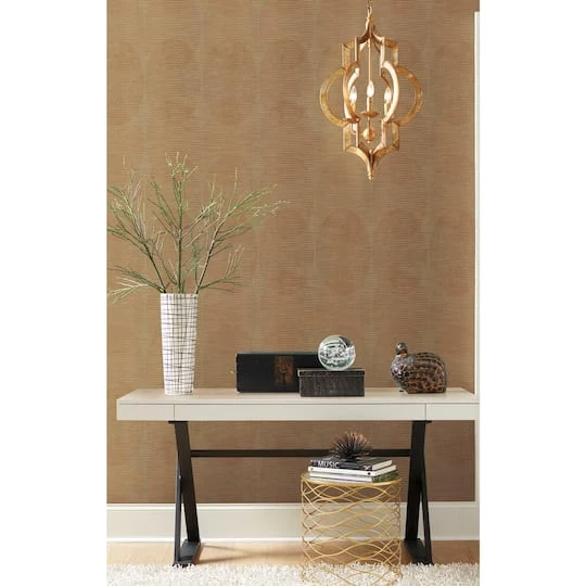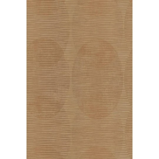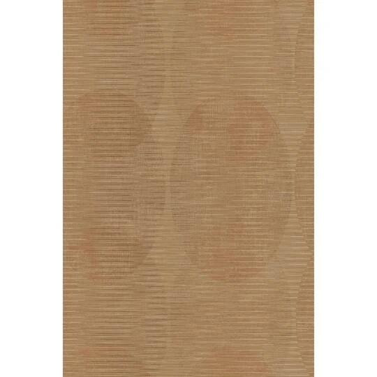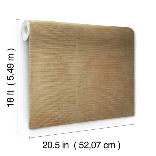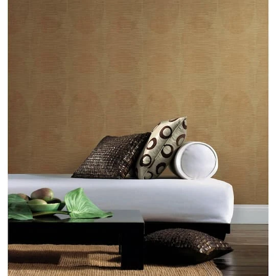Subtle overlapping ellipticals chain together in vertical links and softly mottled horizontal striations create a contemporary fashion statement in Sahara peel and stick wallpaper by Nikki Chu for RoomMates.