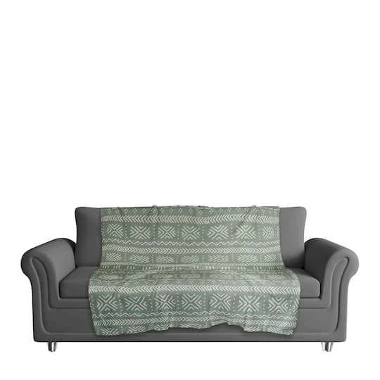 Sage Mudcloth 50″ X 60″ Sherpa Fleece Blanket