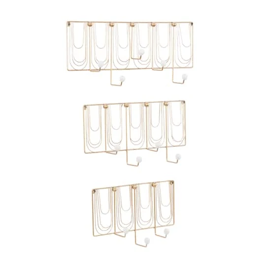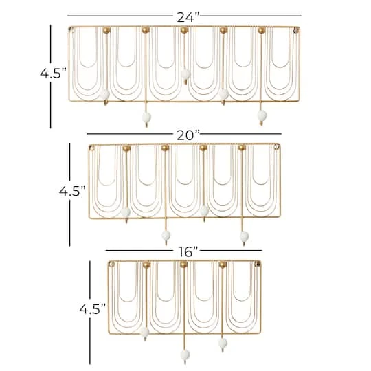 Set Of 3 Gold Metal Glam Wall Hook, 16″, 20″, 24″