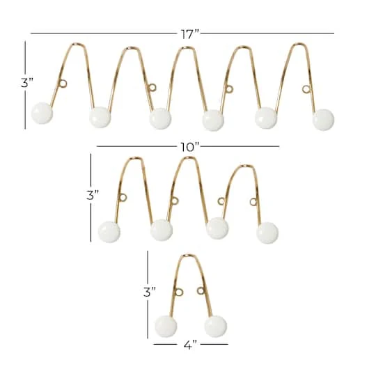Set Of 3 Gold Metal Glam Wall Hook, 4″, 10″, 17″