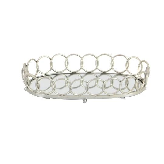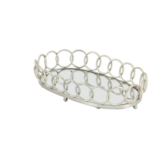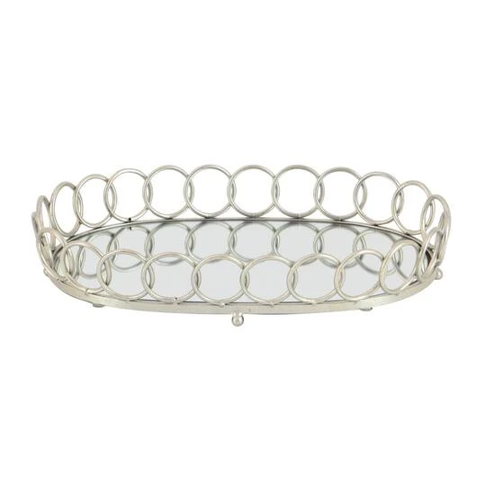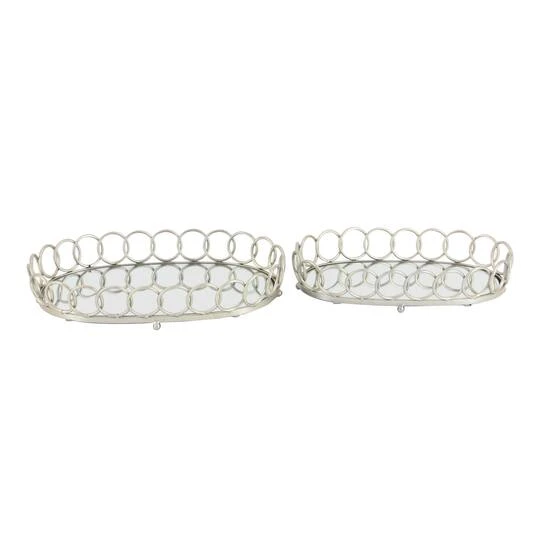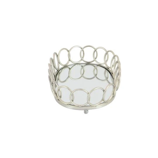 Bring the warmth of iron, glass and glam style into your home with the Silver Glam Tray Set. Use as serving trays or décor holders on your coffee, console, or kitchen tables. Whether in your kitchen or on your coffee table, it’s a great way to display and store your favorite fancy things. Designed with knobs at the base that prevent scratching furniture and table tops, as well as sliding around.