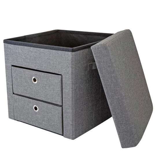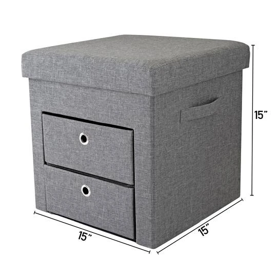 Solve your storage and seating problem with this all in one storage ottoman. Built with 2 removable drawers and storage space on top, this is the ideal piece for your home, office or dorm! The cushioned seating makes this comfortable to sit on, great for gaming! Can be used to store gaming accessories, toys, books, magazines and household items. Lightweight and collapsible for when not in use. Look no further, your perfect storage solution is here!