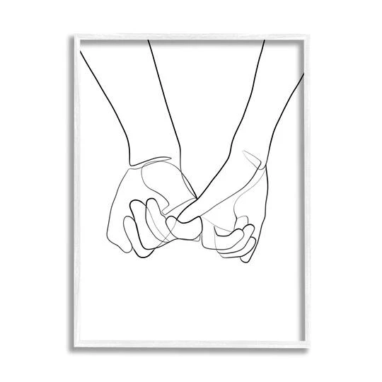 Starting with a giclée lithograph mounted on wood and finished with a texturized brush stroke finish, this intriguing print is sure to add style to your décor. Featuring an abstract image of holding hands and a simple white frame, this piece comes ready to hang in a prominent space in your home.