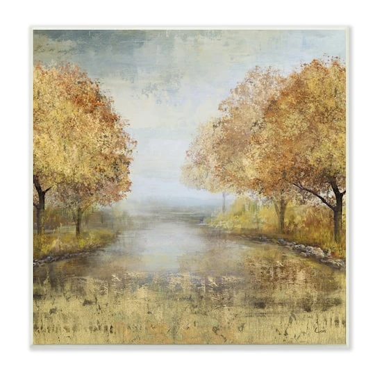 Stupell Industries Golden Autumn Tree Forest Landscape Contemporary Scene, 12″ X 12″