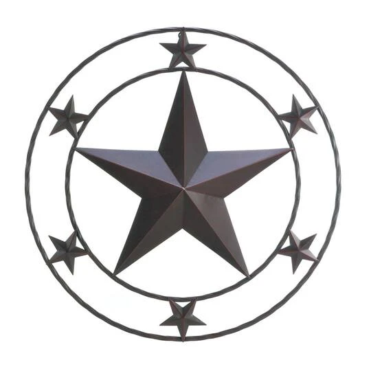 Saddle your wall with Western style! This dramatic iron wall décor features a large star surrounded by six smaller stars to give your space a little bit of cowboy flair.