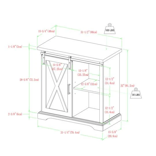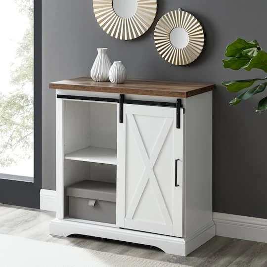 With a barn door front, this buffet combines modern farmhouse and traditional appeal for an overall stylish addition to your space. This rustic accent cabinet also features two interior adjustable shelves. Position in your entryway as an entryway table, bedroom as a storage cabinet, or kitchen as a buffet for anything from media to décor.