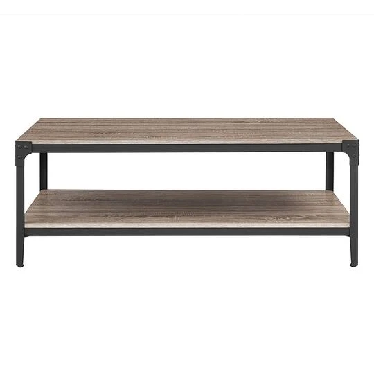 Bring an urban industrial edge to your entertaining space with this rectangular coffee table. Made of warp-free warp-resistant MDF that’s pressed with a premium multi-grain laminate, this cocktail table is ready to become the center of your living room. Its durable construction makes it ideal for everyday use. This mixed material coffee table features riveted angle brackets on the corners offering a level of distinction you didn’t know a coffee table could achieve.