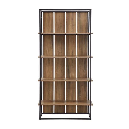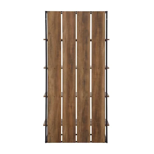 Introduce a rustic, modern farmhouse style with an industrial influence by featuring this bookcase in any room of your home. The plank style boards in back are a perfect addition to the design. With a metal frame and warp-resistant MDF, this piece uses durable laminate construction for a sturdy design. Use in your entryway, hallway, living room, bedroom, or home office to add personality to your space with décor of choice. Whether you organize family photos, memorabilia, books, candles, plants, or other décor, this bookshelf will provide the extra storage space you need.