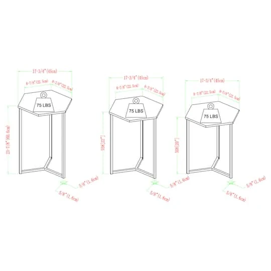 Designed with uniqueness and modern style in mind, this set of nesting tables will make a stunning transitional statement to your home. Their versatility gives you options to choose where you want to place them, making it easy to find a use for each. Pair all three together or spread them throughout your home in the living room, bedroom, and other areas. They function well next to a sofa, chair, or bed as a nightstand. The options are unlimited.