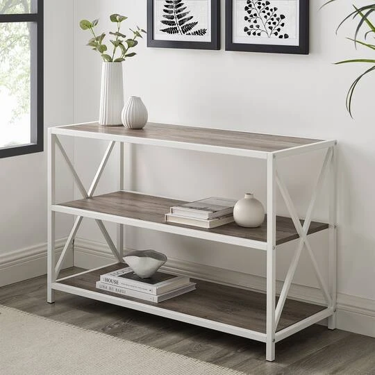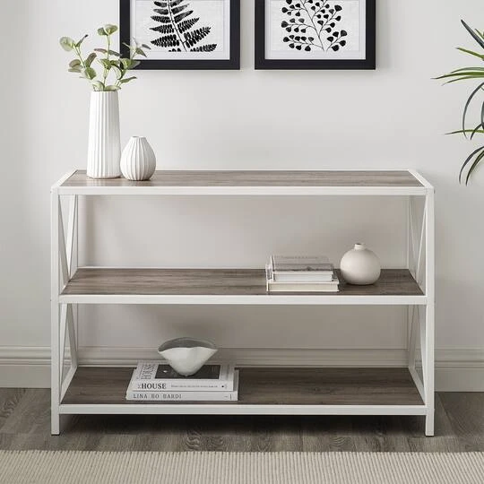 Collect all your treasures in one place with this industrial bookcase. When used as an entry or sofa table, your guests will get to know you with the pictures and souvenirs that you display on the three long shelves. Use the piece as a home office storage solution for documents and reading materials. This multipurpose bookcase will add a rustic, urban farmhouse charm to any room in your home!