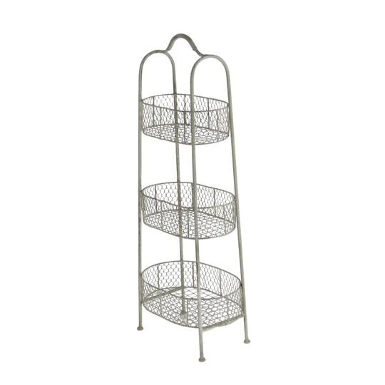 This food-safe 3 tiered metal serving stand is a great decorative basket rack for coffee and side tables, the dining area, and the kitchen. Let this tiered server provide a sense of style and function to your home by displaying fruit, napkins, bread, or even corralling clutter. Whether in your kitchen, or on your coffee table, it’s a great way to display and store your favorite things. Designed with black rubber stoppers at the base that prevent scratching furniture and table tops, as well as sliding around.