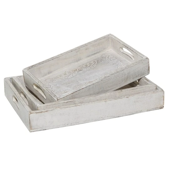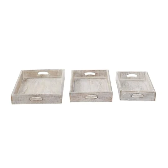 Get organizing and decorating a charming vibe with these whitewashed decorative trays placed on your farmhouse counters or console tables. Whether in your kitchen, or on your coffee table, it’s a great way to display and store your favorite things. A storage piece that is spacious for your trinkets or decorative goods on your mantle, coffee table or kitchen counter.