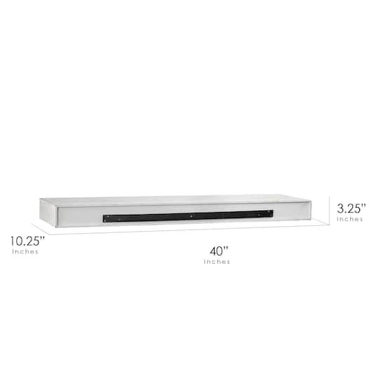Favorably sized at 40″ x 10″ x 3″, this shelf is made of wood in a whitewash finish and is equipped with a bar bracket hanging system to securely hang the shelf to any wall. Hang alone or in pairs for a custom display of books, picture frames, vases, and other decorative accessories.
