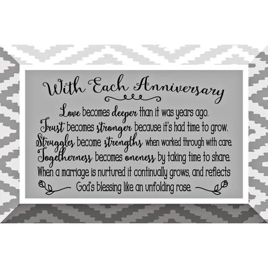 Featuring an inspiring anniversary quote, this artisan glass plaque is beveled on each side and comes easel backed and individually boxed. The silk-screened designs and verses create dimension.